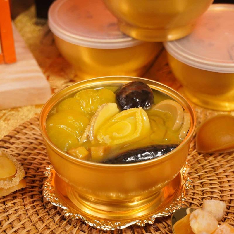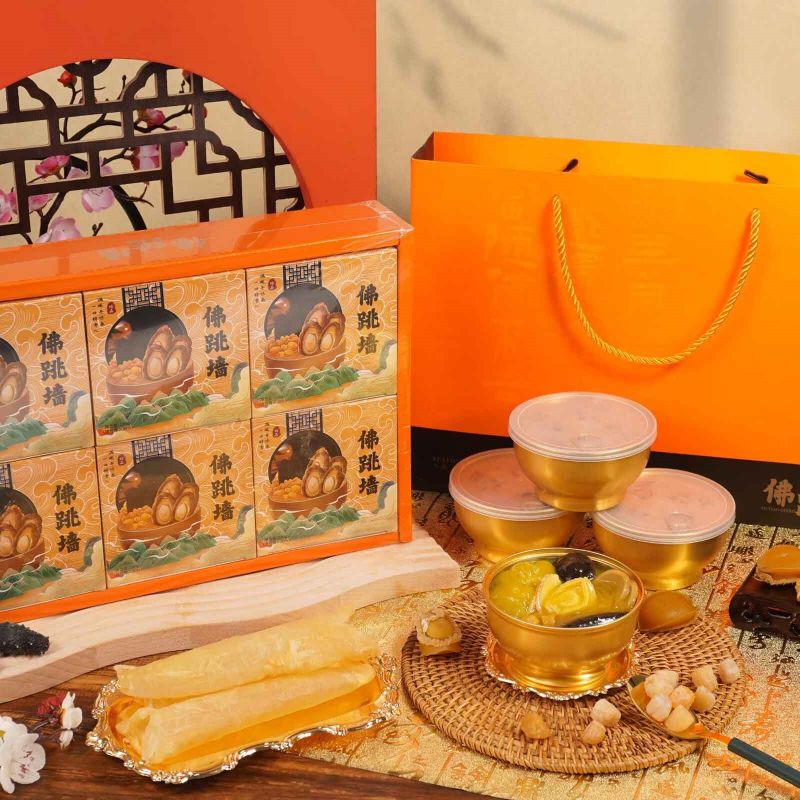 Impress your guests by serving Buddha Jumps Over the Wall as a stylish appetizer or dip. Scoop a spoonful onto crackers or toast points for a sophisticated and flavorful snack, showcasing the exquisite taste of this classic Fujianese dish.